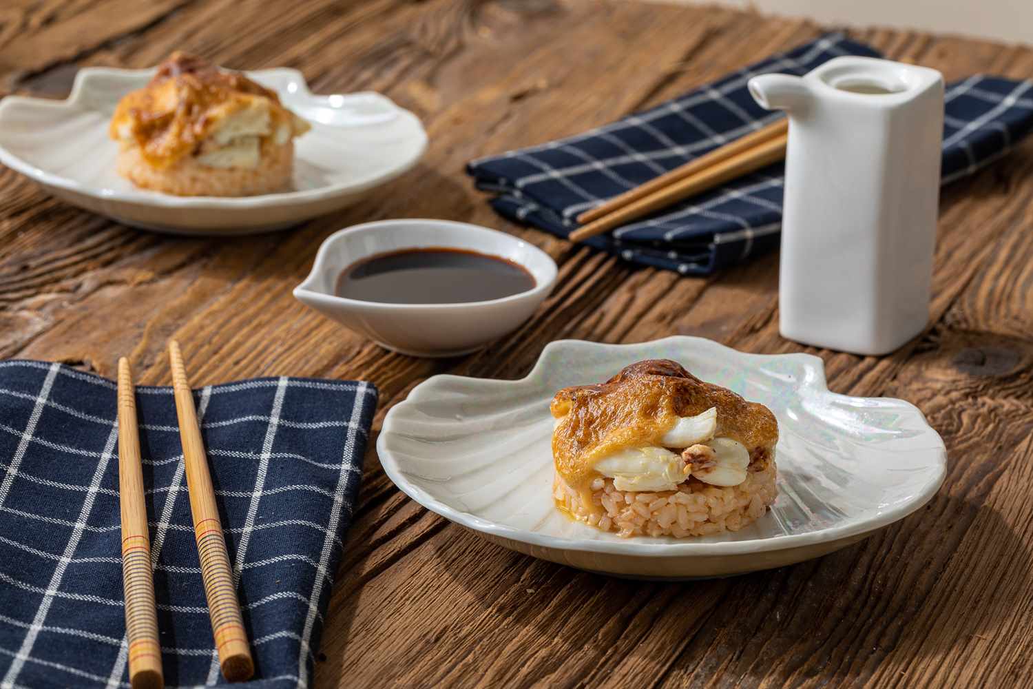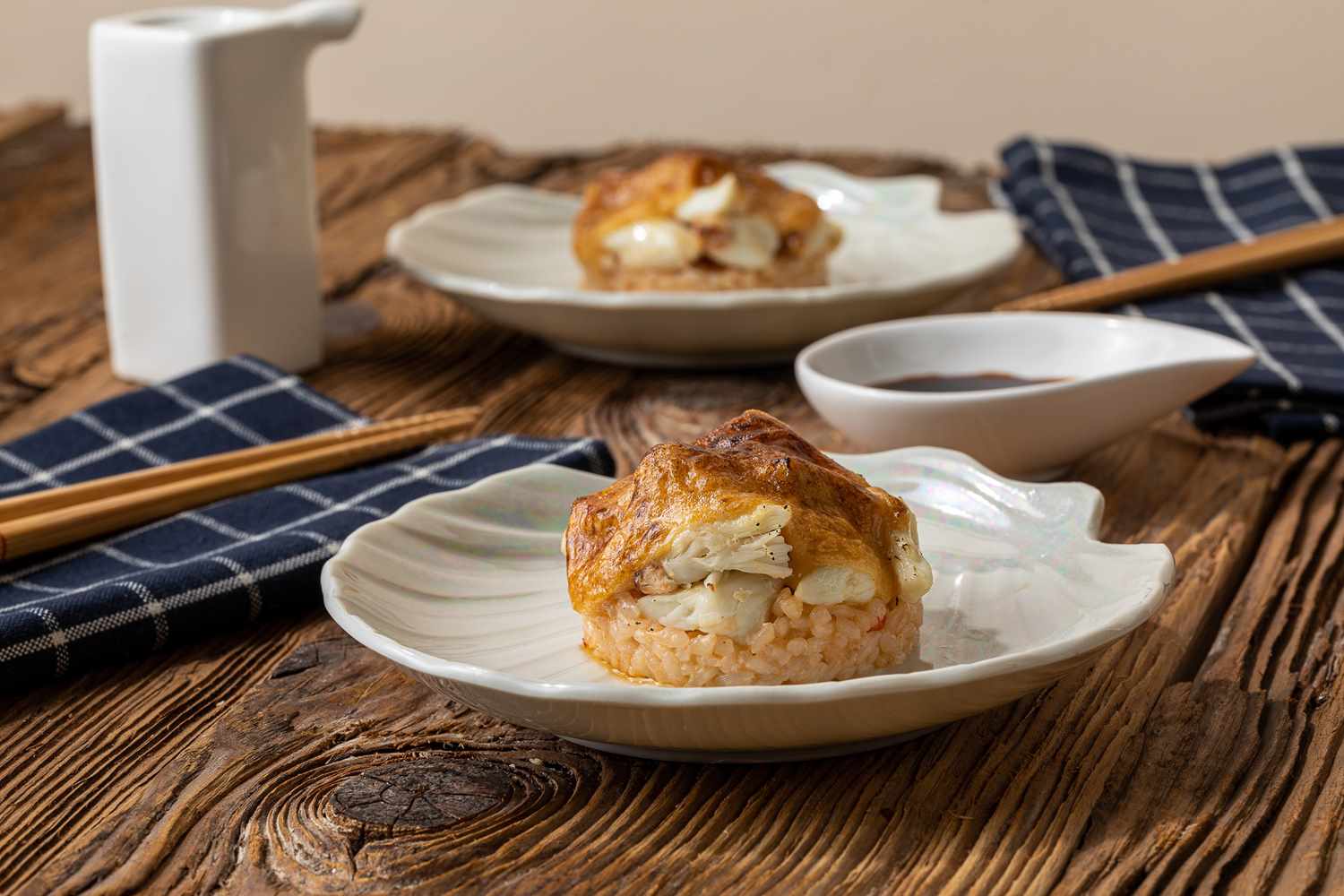 - Place the crab meat on top of the rice and glaze with the Japanese mayonnaise