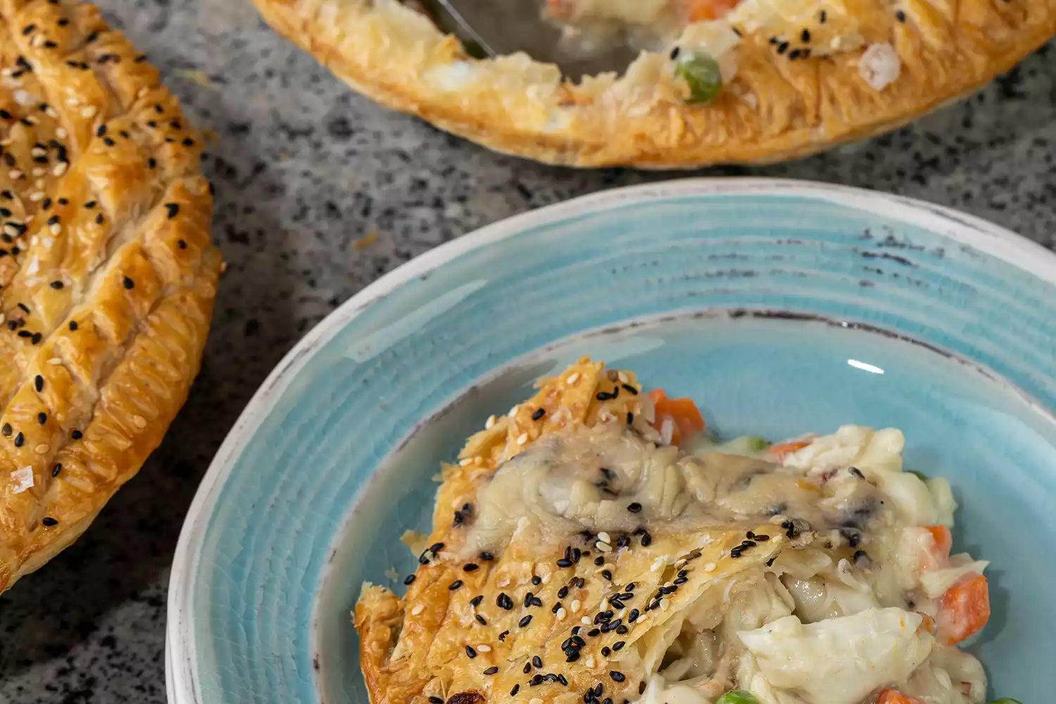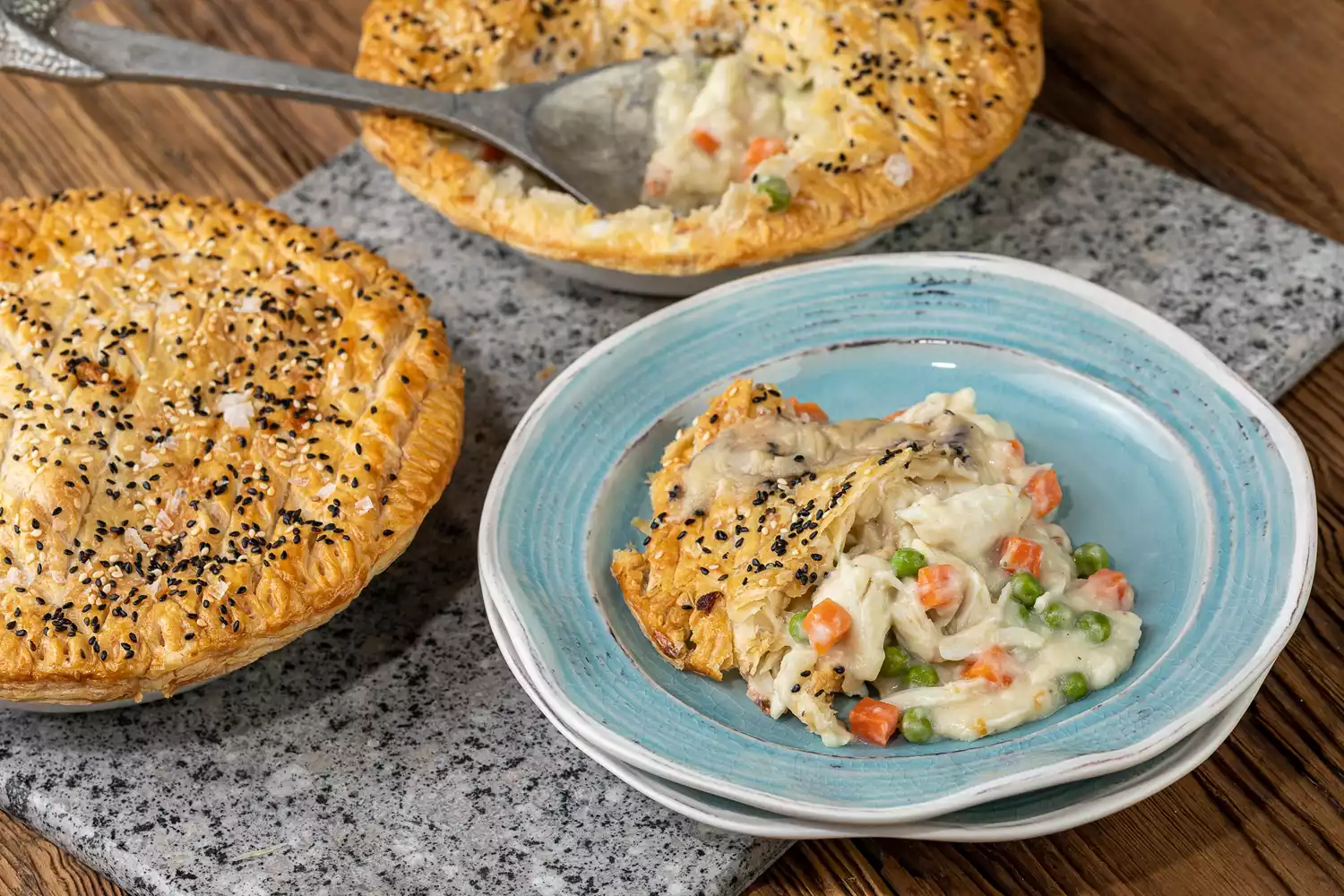 9. Top with remaining pie dough, cut any excess and seal closed with a fork
