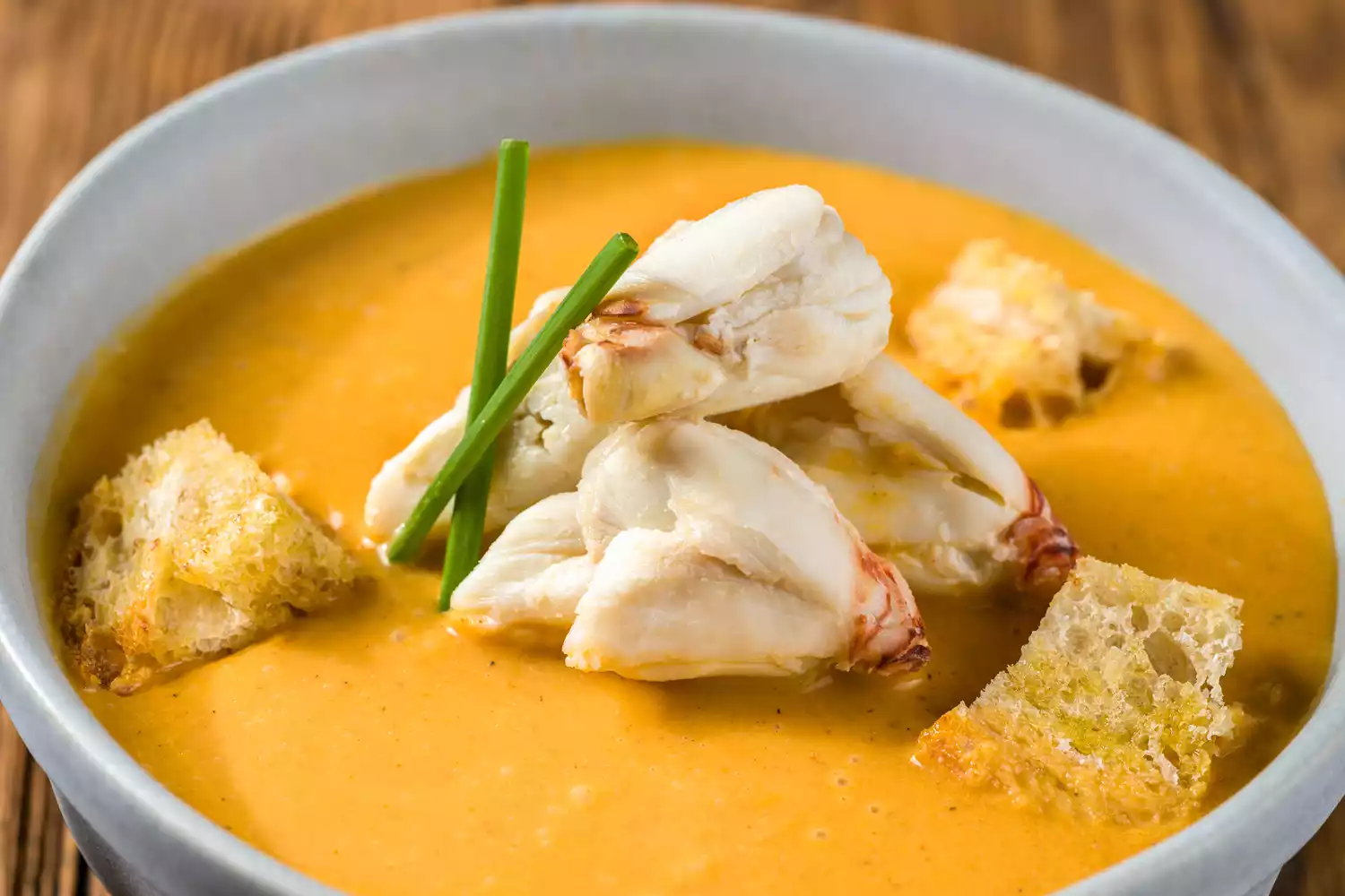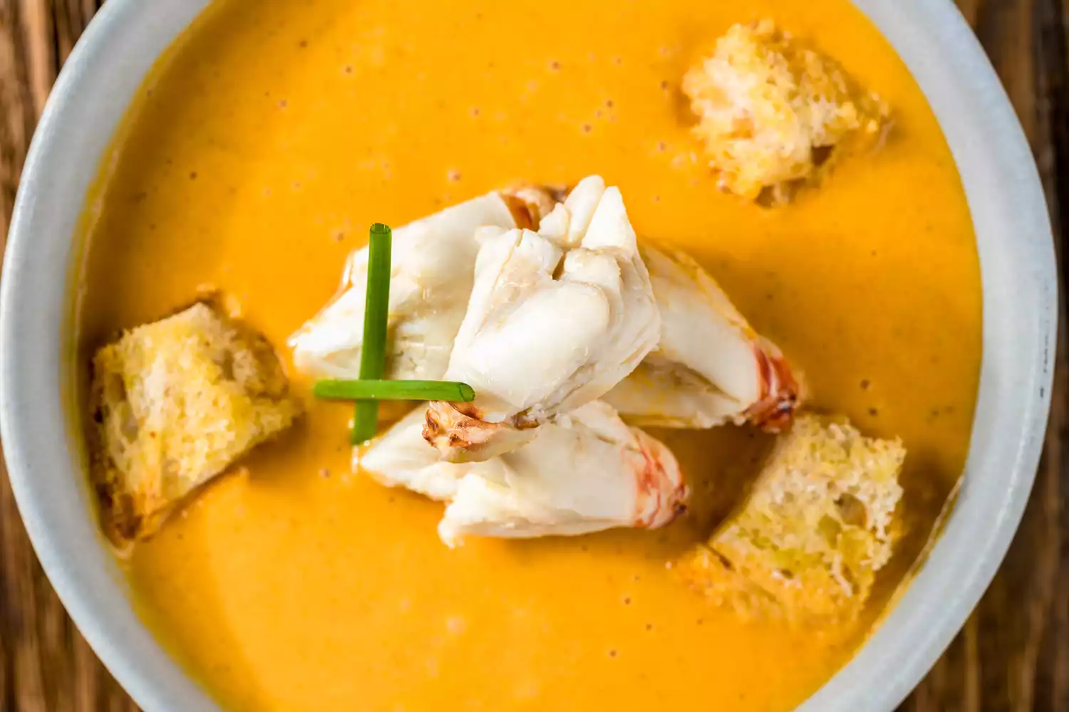 - In small sauce pan, melt butter and warm crab meat through. Season with salt, pepper and a squeeze of lemon juice. Serve immediately on top of soup